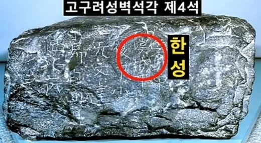 현 북한 평양 고구려 성벽이 한성임을 밝히고 있는 각석