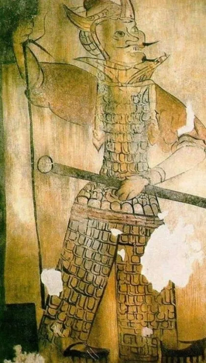 묘실 입구에는 생전의 문지기가 그려져 있다.