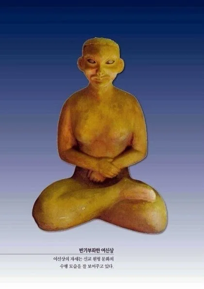 반가부좌 모습을 하고 있는 복원된 여신상,