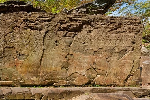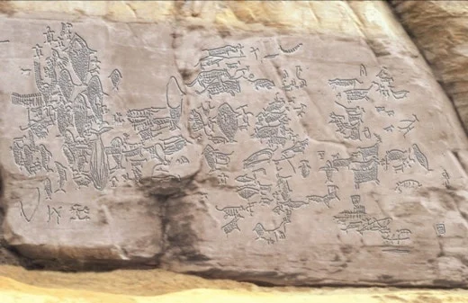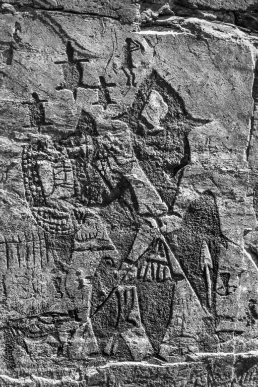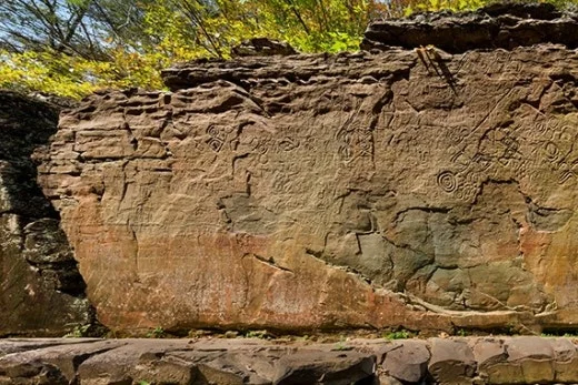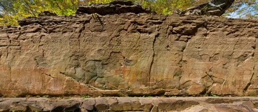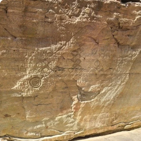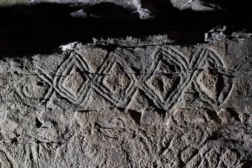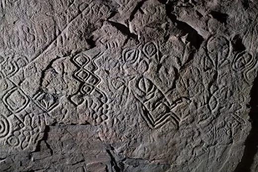 청동기 시대에 단단한 돌을 이용해 새긴 추상 도안이 남아있다.