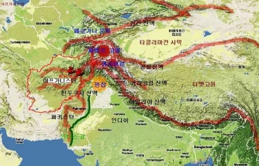 파키스탄(인도), 아프가니스탄 등에 걸쳐 있다.