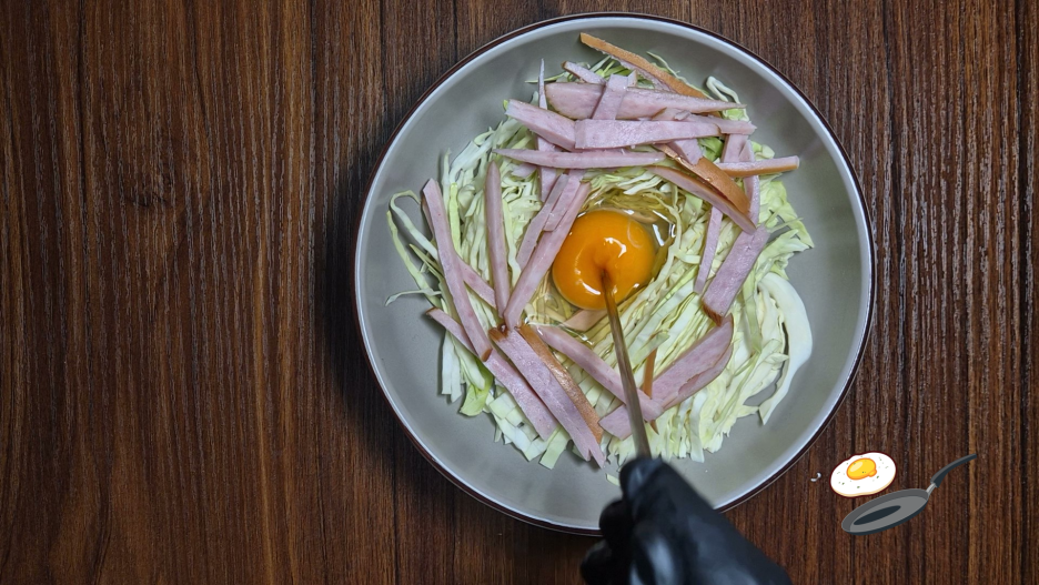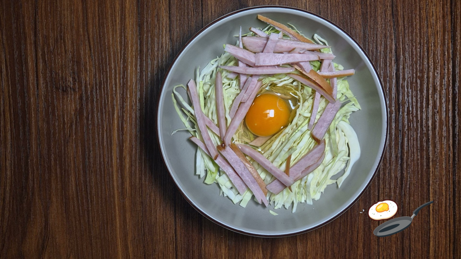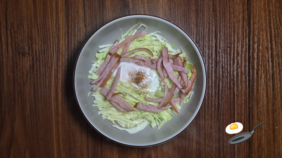 햄, 양배추를 깔아 주세요.