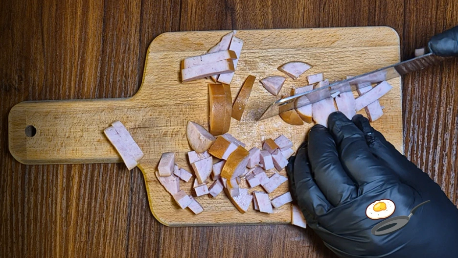 먼저 편의점에서 산 핫바를 먹기 좋게 썰어 줍니다.