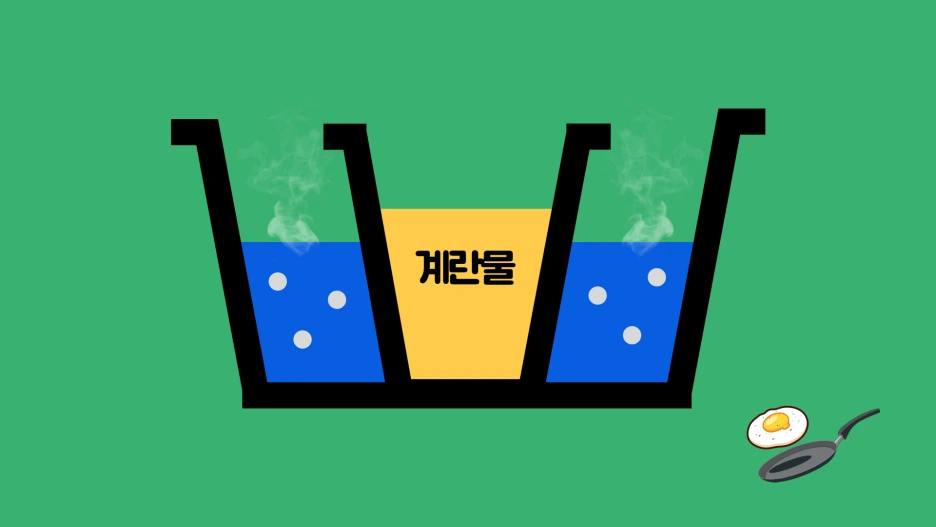 냄비에 물을 넣고, 계란물을 담은 그릇을