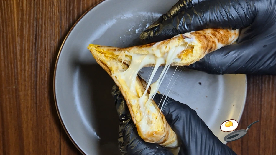 꾹꾹 눌러가며 뒤집으면 금방 치즈가 녹습니다.