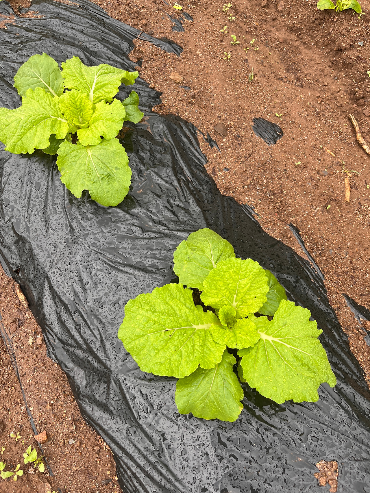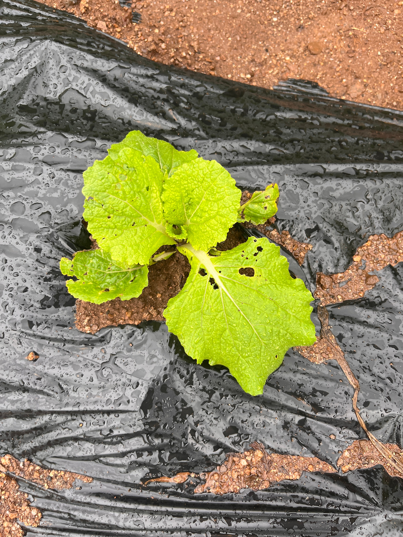 처음에 잘 안크는 것 같아 보였던 배추들이 본격적으로 자라기 시작한 것은 비료를 주고 난 후 비가 흠뻑 내린 다음부터였다. 땅에 스며든 비에 비료가 잘 녹아 배추가 잘 섭취한 까닭일 테다. 땅에 심은지 2주 정도가 지나니 잎이 8장으로 늘어났고 크기도 손바닥 두 개 합한 크기로 자랐다.