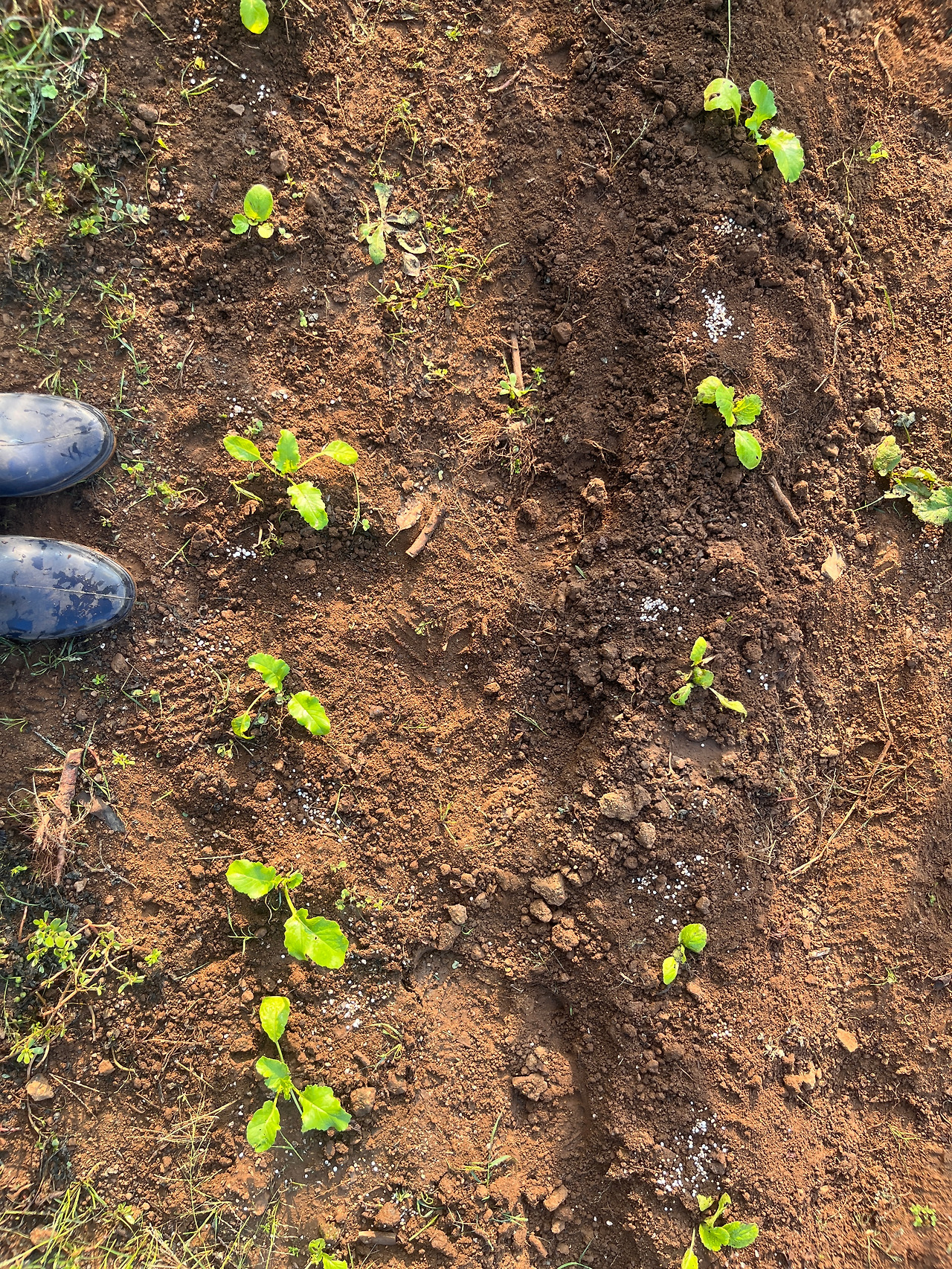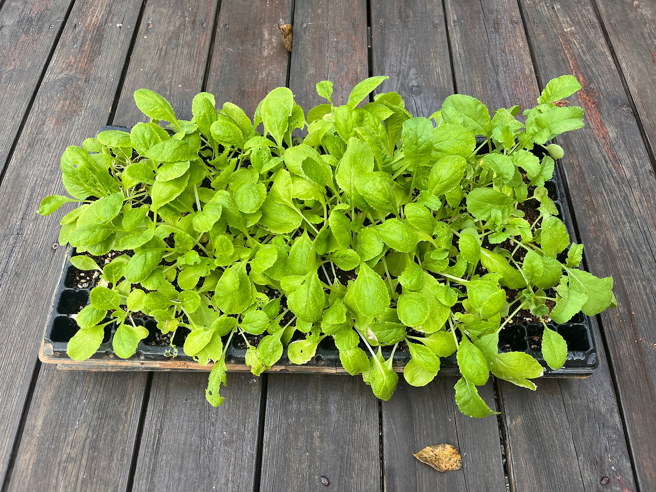일주일의 여름휴가가 끝나고 배추모종판을 자동차에 싣고 서울에 가져와 베란다에서 2주를 키웠다. 새싹이 검지 손가락만큼 자란 8월 31일, 모종을 가져다 텃밭에 정식했다. 정식한 배추 모종은 잎이 고작 서너 개뿐인 보잘것없는 모양새라 이게 과연 사람 꼴, 아니 배추 꼴이 될까 의심이 났다.