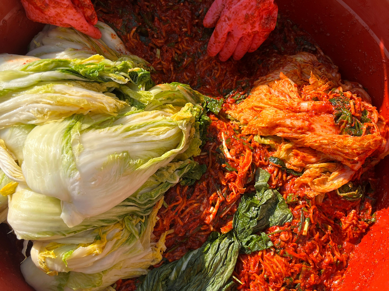 그렇게 애지중지 키운 배추를 93일 만에 수확해 지난 11월 16일 김장을 했다. 김장날은 추워서 손을 호호 불어야 정상이지만, 이날은 마치 봄날처럼 포근했다. 배추를 나르다 더워서 점퍼를 벗어야 할 정도였다.