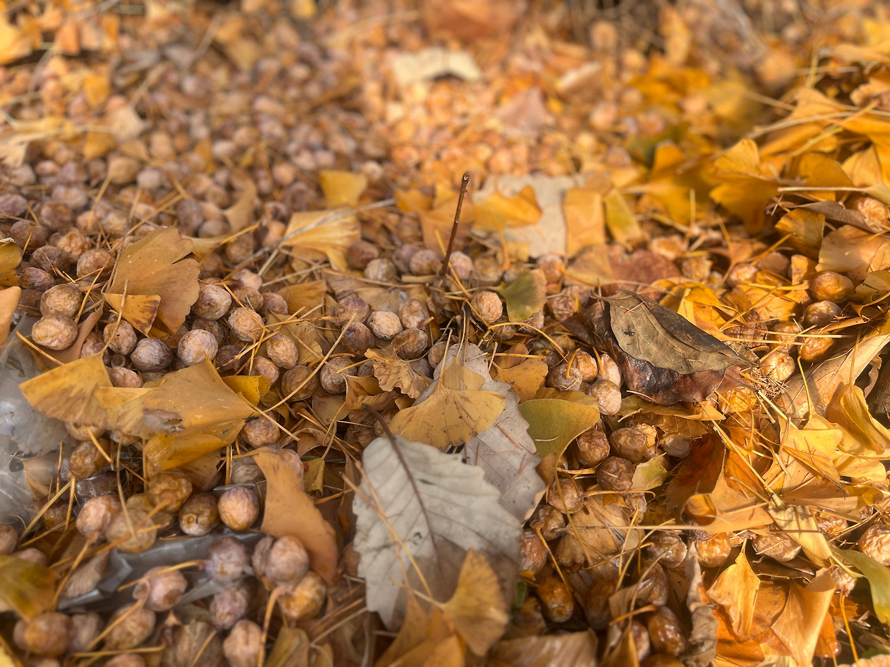 우리 집 은행나무가 떨군 은행알이 수북하다. 사진=김효원