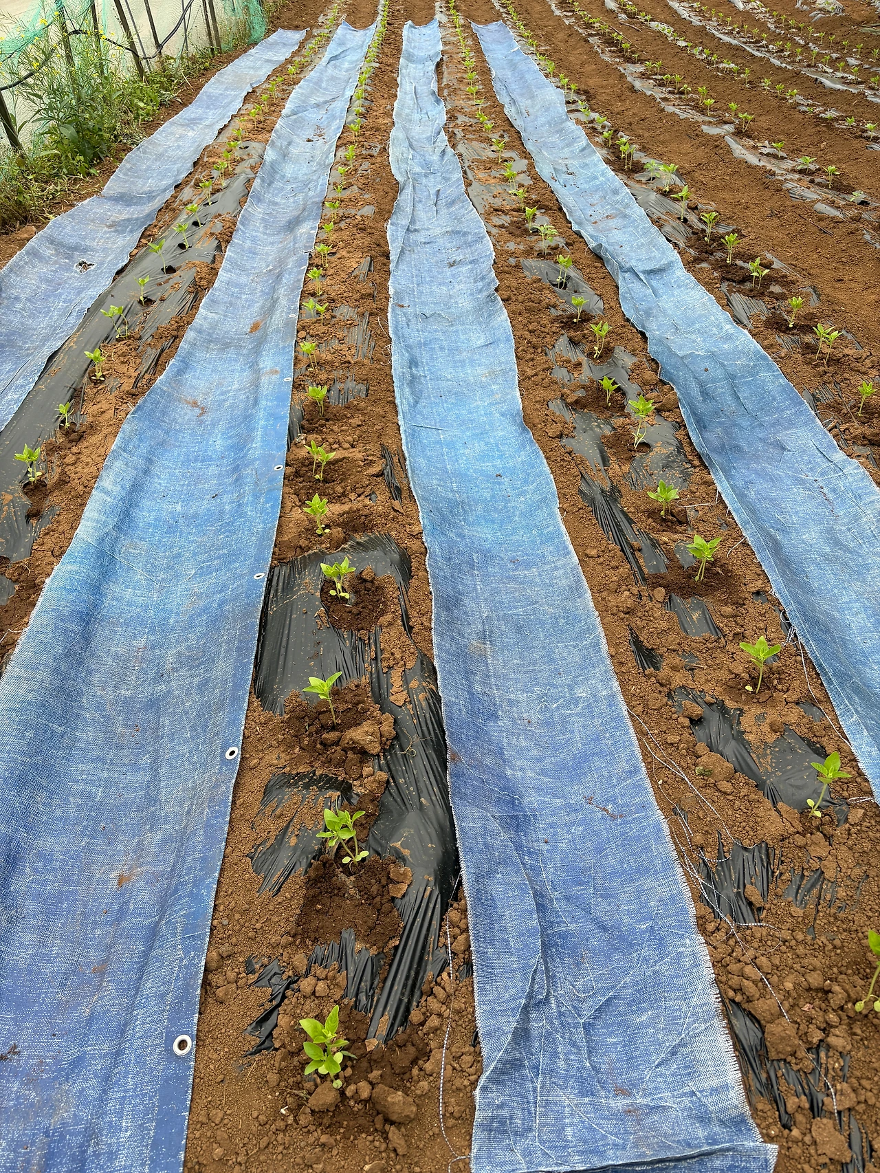 살충제를 뿌린 후에는 이랑에 제초매트를 까는 작업을 했다. 곧 장맛비가 내리면 이랑은 온갖 풀이 가득 자라날 터였다. 뽑아도 뽑아도 또 자라나는 풀과의 전쟁에서 이기려면 제초제나 제초매트가 필수다. 제초제는 영 마음이 내키지 않아 지난해에는 미련하게도 풀을 뽑고 또 뽑았다. 올해는 제조매트를 미리 깔아 풀이 덜 자라도록 하자고 작정했다.