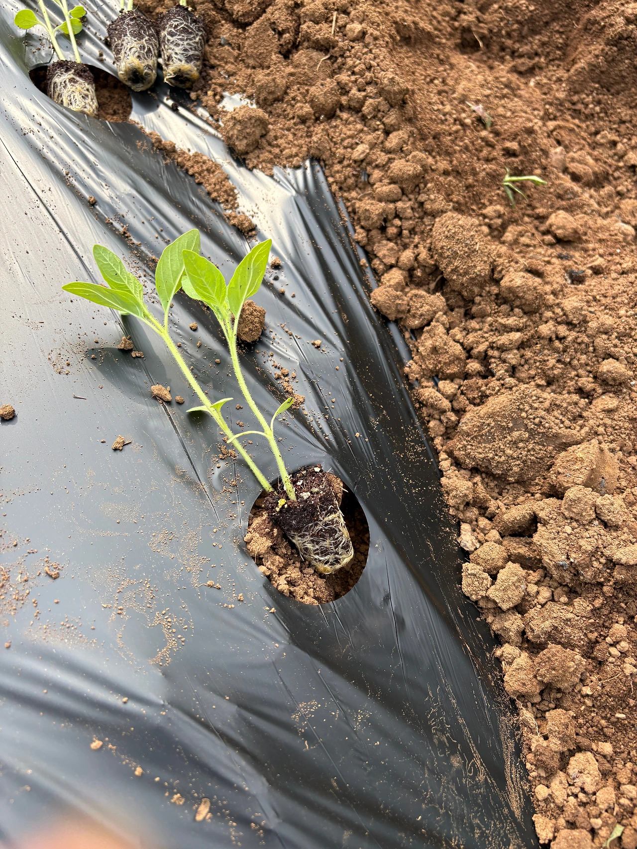 비닐에 구멍이 뚫려있어 손쉽게 모종을 심을 수 있다. 사진=김효원