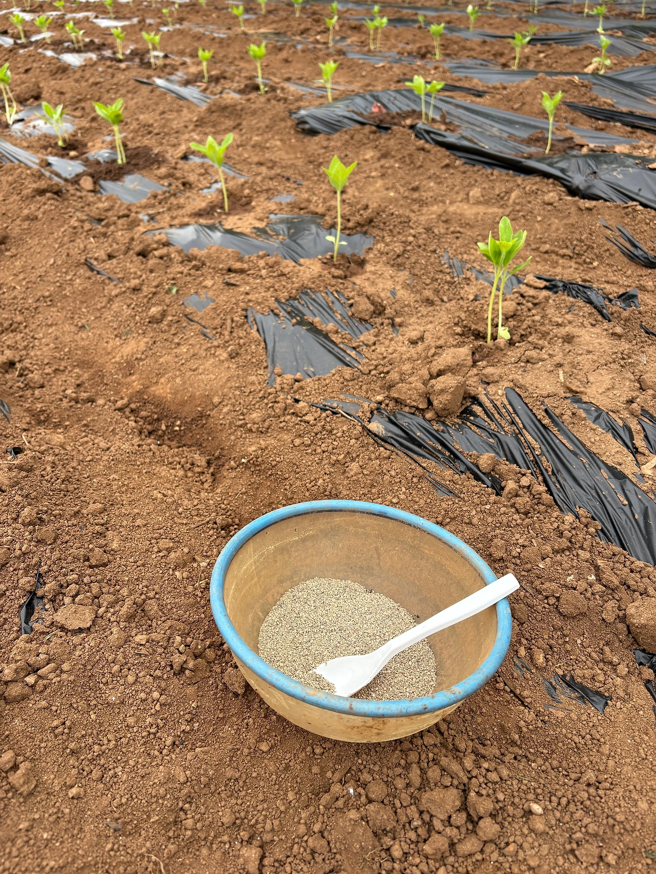 모종 옆에 토양살충제를 한 숟가락씩 넣어주었다. 사진=김효원