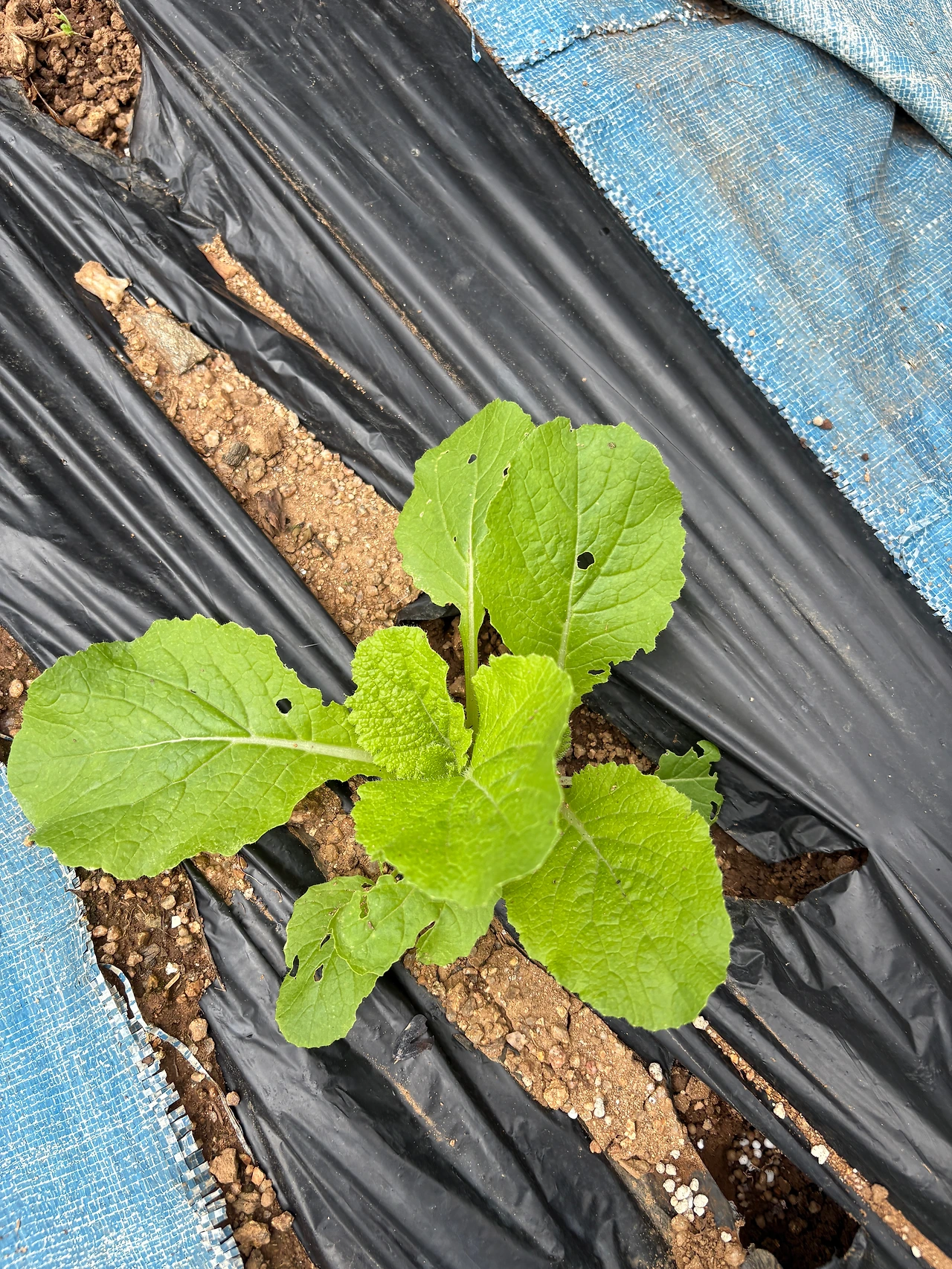우렁아재가 심어준 배추를 세어보니 약 120 포기! 그 옆에 무도 어림잡아 50개 넘게 싹을 내밀고 자라고 있다. 배추 120 포기에 무 50개라니. 올해도 김장 전투는 치열할 것으로 예측된다.