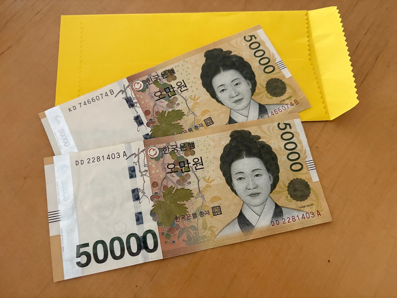 참깨 손님이 돈을 넣어 건네준 봉투는 샛노란 색으로 참기름 색깔과 닮았다. 오래 간직하기 위해 봉투에 ‘참기름 판 돈’이라고 쓰고 그날의 날짜를 적어두었다.