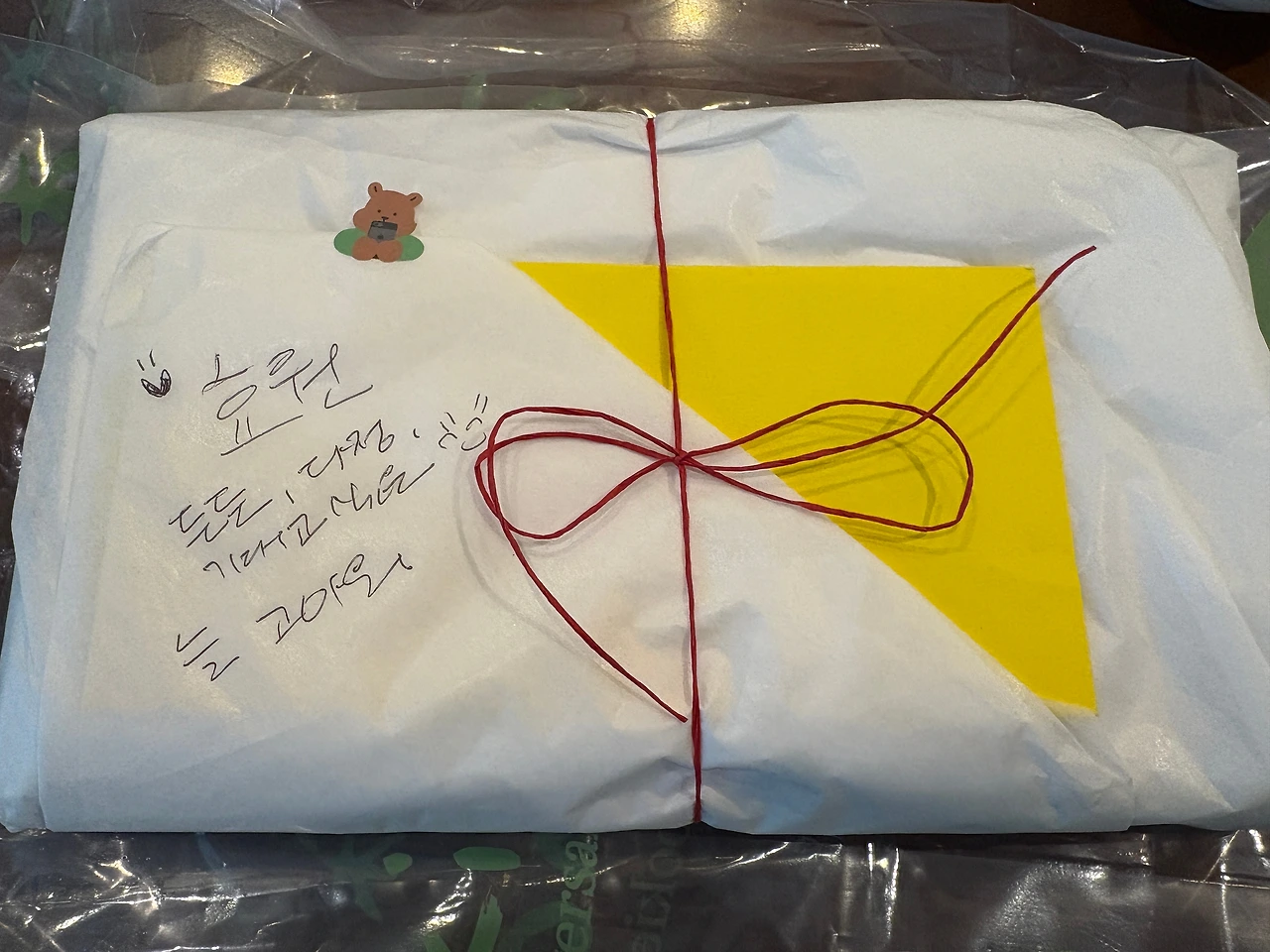 승주 선배는 집에서 직접 재봉틀로 만든 식탁 매트와 참깨 값을 넣은 예쁜 봉투를 함께 내밀었다. 평소 손으로 만드는 걸 좋아하는 선배가 만든 귀엽고 사랑스러운 선물에 감동이 두배로 커졌다.