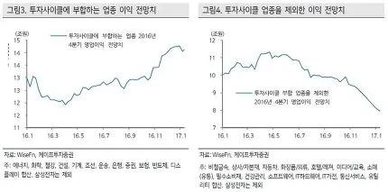 그러나 삼성전자를 제외한 그 외 경기민감주들 역시 실적 개선으로 투자 메리트가 올라간 것도 역시 사실이다. 또한 2017년 3월 31일 코스피 지수 2160.23에서의 트레일링 PBR은 1.06배에 불과하며 이머징 증시 평균 PBR 1.4배에 미달하고 있다. 이는 상장 기업들이 사업을 정리하고 자산을 정리할 때나 나올 수 있는 가격대로 시장의 약세 가능성이 제한적임을 의미한다.