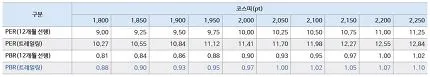 따라서 본 재판부는 미국 금융위기 이 후 회복국면 중 코스피의 최대 PBR이자 이머징 증시 평균 PBR 1.4배(2012년 3월)를 적용한 2,853 포인트에 10% 할인율을 적용한 2500-2600 포인트를 본 시장의 목표 지수로 인정한다.