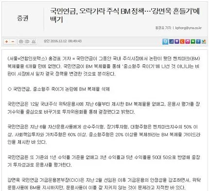(관련기사: 국민연금, 오락가락 주식 BM 정책…'강면욱 흔들기'에 백기