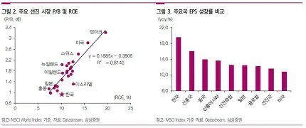 반면 한국은 수익성과 이익모멘텀에 비해 저평가 상태. 풀리는 유동성들이 더 이상 미국에만 머물 가능성은 낮다고 본다.