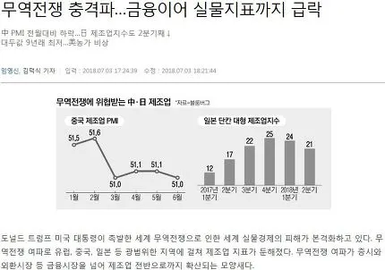 (출처: 무역전쟁 충격파…금융이어 실물지표까지 급락(2018년 7월 3일)