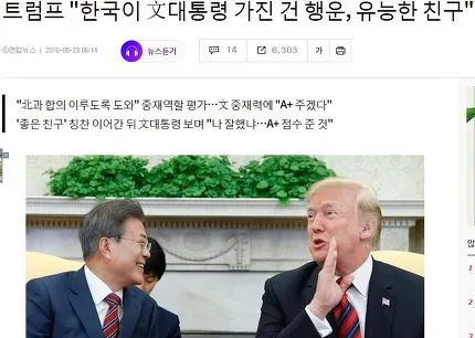 (관련 기사: 트럼프 "한국이 文대통령 가진 건 행운, 유능한 친구"(2018년 5월 23일)