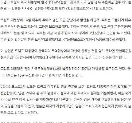 (관련기사: 트럼프, 무역협상 연계 ‘주한미군 철수 시사’ 발언 파문(2018년 3월 16일)