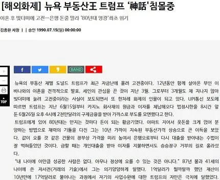 ([해외화제] 뉴욕 부동산王 트럼프 ‘神話'침몰중(1990년 7월 15일)