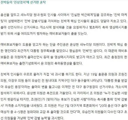 (관련 기사: ‘진박 감별사’까지 활개…그들만의 놀이터 돼가는 총선 (2015년 12월 25일)