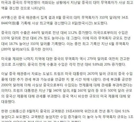(관련기사: '무역전쟁'에도 8월 중국의 대미 무역흑자 310억 달러, 신기록 경신(2018년 9월 8일)