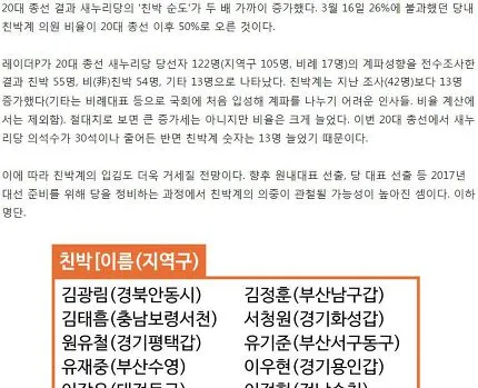 (관련 기사: 새누리 122명 계파 분석...높아진 `친박 순도`