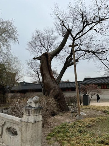 들어서자마자 언제부터 있었을지 가늠되지 않는 나무를 만났다. 세월이 너무나 오래 흘러버려서 굵은 지지대가 아니면 당장 쓰러질 것 같은 모습. 어쩐지 속도 텅 비었을 것 같았다. 그 모습이 못내 쓸쓸할 뻔했지만, 나무 앞을 지키고 있는 듯한 해태(?)가 너무 귀여워서 어느 정도 위안이 되었다. 저 역시 세월의 풍파를 이기지 못한 모습이었지만, 외롭지 않게 함께 하는 듯해서.