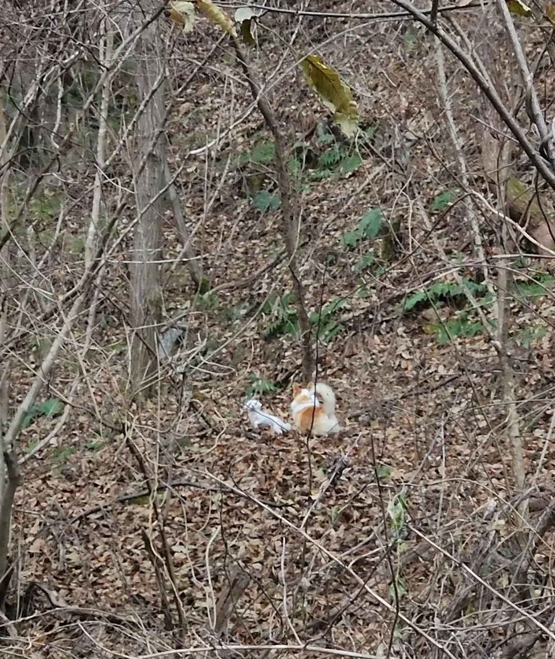 보통 산을 오르면 나는 작은 오솔길을 헤치며 가고 뽀송이는 양 옆의 능선을 따라 오르내리며 멀어졌다 가까워졌다 한다. 그날은 그 텀이 좀 길다는 생각이 들었다. 그래서 얘가 어디 있나 양 옆을 올려다봤다. 저 위에서 뽀송이가 나를 보고 짖고 무언가 허연 덩어리를 맴돌았다. 나는 그게 뭔지 알 수가 없어서 핸드폰 사진기를 켜고 10배로 줌을 당겼다. 몽이였다. 몽이가 나를 보며 동상처럼 서 있고 뽀송이는 몽이의 냄새를 맡으며 꼬리를 흔들고 있었다. 당황해서 목이 메어 부르는 내 쪽을 보며 몽이는 계속 그냥 돌처럼 서 있었다. 길도 없는 비탈을 기어올라가 품에 안을 때까지 몽이는 내 목소리를 못 알아듣는 것 같았다. 내 품 안에서 떨고 있는 이 작은 몸이 현실 같지가 않았다.