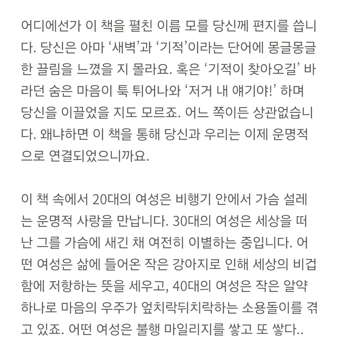 에세이와 연애 감성 글을 씁니다. 대학에서 문예창작 전공.