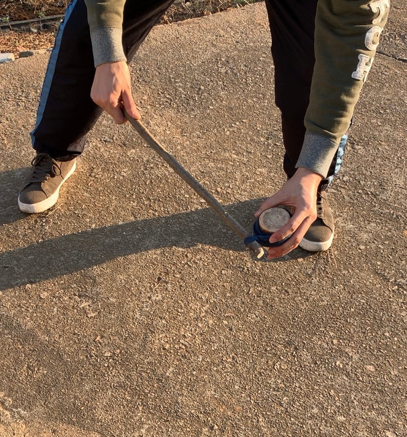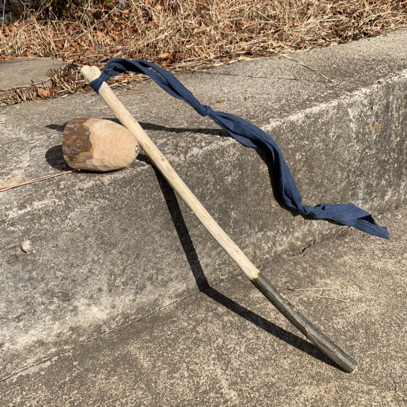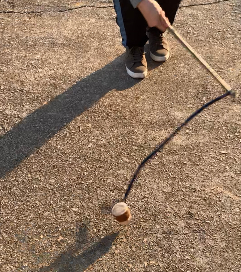 음! 나름 잘 만들었다. 25년 이상 지난 팽이깎는 법을 손은 기억하고 있었다. 팽이치기 하는 법도 손이 기억하고 있었다. 조금 있으니 큰 딸이 마당으로 나왔다. 큰 아이에게도 팽이 돌리는 법과 치는 법을 시범으로 보여줬다. 오~! 큰 아이는 팽이치기가 처음임에도 나름 잘 한다!! 사실 팽이치기가 어려운 건 아니니까. 때마침 포근해진 겨울날 아이들과 어릴 적 추억을 공유한 주말! 즐거운 한 때를 보냈다. 큰 아이는 팽이치기의 재미를 느끼더니 자기 것도 만들어 달란다. 두 아이가 팽이싸움을 하는 모습을 상상하며 팽이와 팽이채 한 세트를 하나 더 만들었다. 이번엔 팽이채도 제대로 모양을 내봤다.