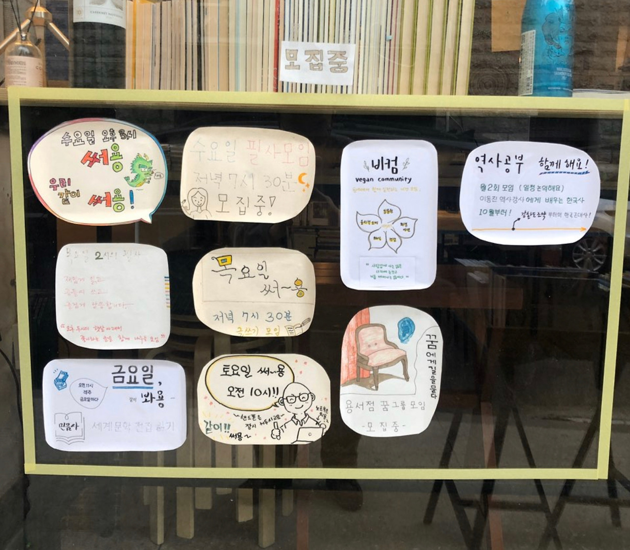 코로나19로 인해 사람들의 따뜻한 온기를 경험하기가 더욱 어려워진 시대입니다. 많은 사람들이 서로 대면하지 않는 삶을 일상으로 살아가고 있습니다. 하지만 그럴수록 사람들의 마음속에는 함께 하던 삶에 대한 그리움이 더 자라나게 될 것 같습니다. 적절한 보호조치를 취한다면 용서점에서와 같은 소규모 모임들은 감염의 위험이 그리 크지 않을 것입니다. 비대면의 시대에 모여서 서로의 삶에 교감하던 즐거움을 다시 경험할 수 있기를 바래봅니다.