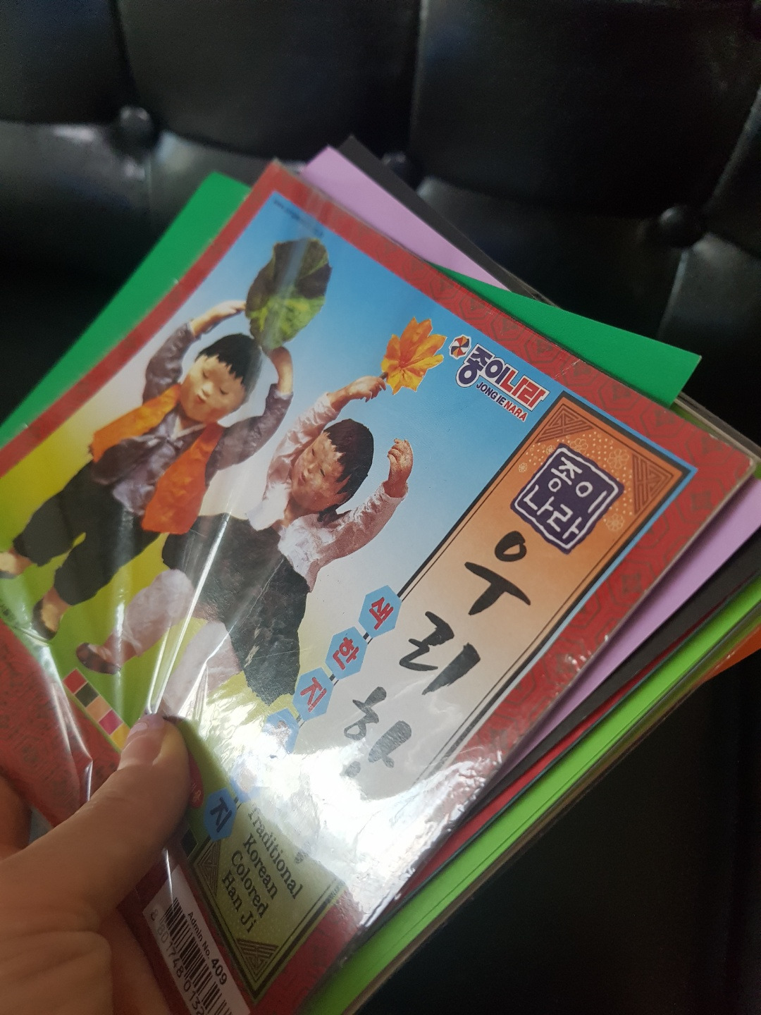오전에는 예전에 살던 앞집 누나가 준 프뢰벨 교구로 한글 놀이 공부를 했다. 그러다, 당근 마켓에 물건을 올리다가 근처에서 <색종이 무료 나눔>이 있길래, 마스크 쓰고 무료 나눔 받고 왔다.