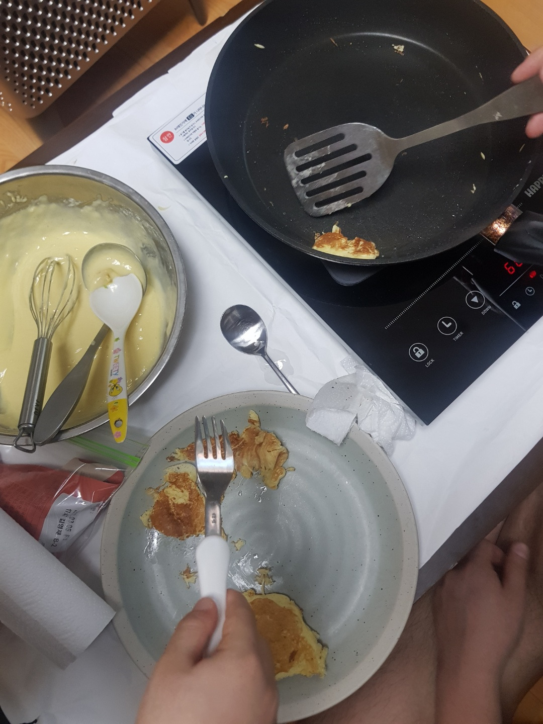 3) 가족과 처음으로 팬케이크를 만들어 볼 기회가 있어서 감사하다.