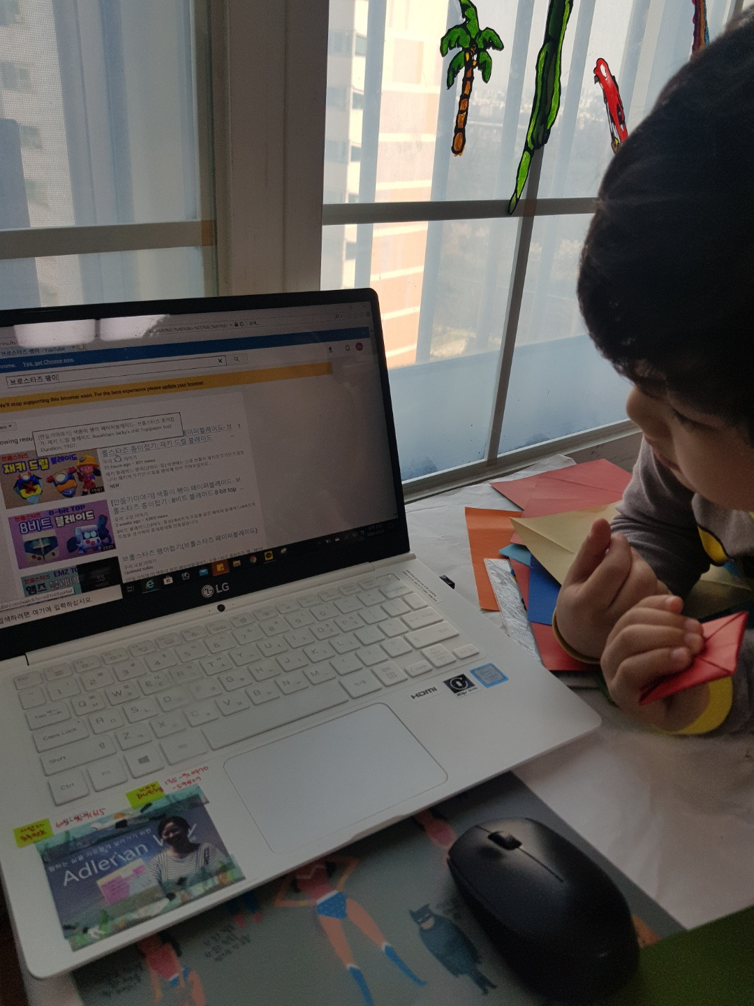 노트북 영상이 아들에겐 잘 안 보였을 수도 있고, 7세에겐 너무 어려웠을 수도 있겠다.