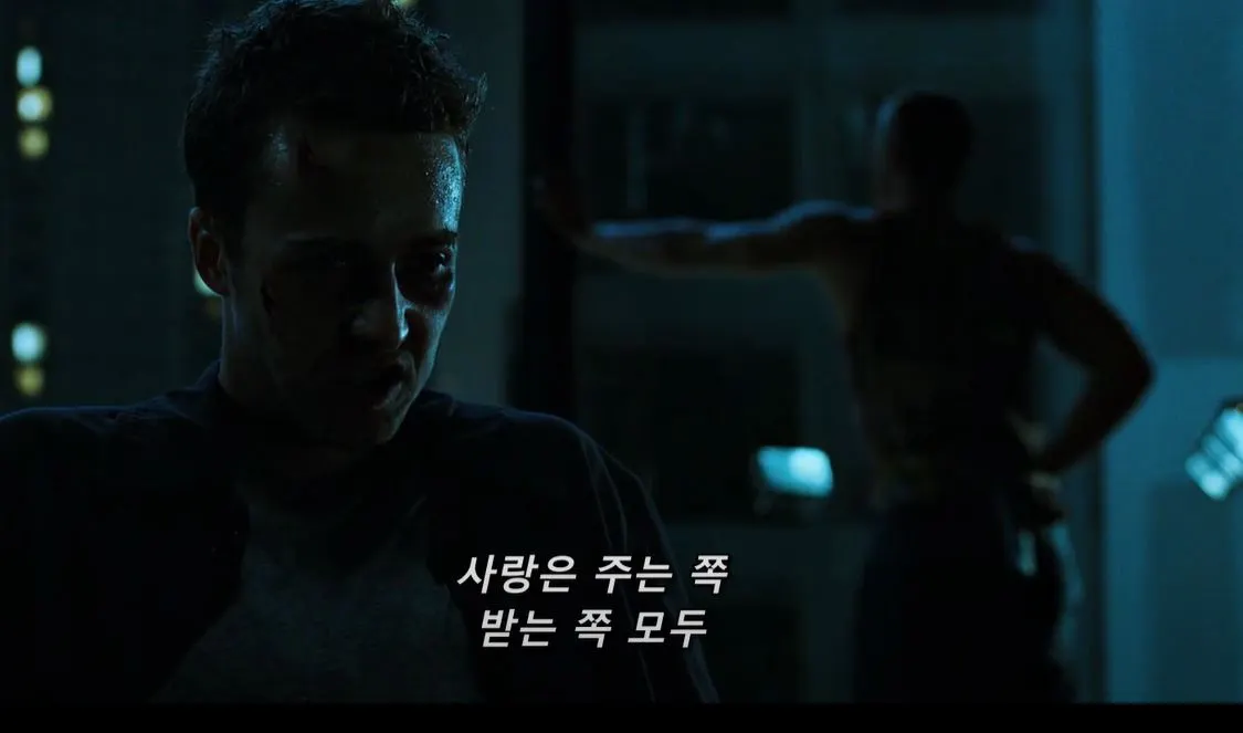 아니야. 싸워 본 적 없으면 너 자신을 얼마만큼 알겠어? 흉터 없이 죽고 싶지 않아!" No, it is not. How much can you know about yourself, you've never been in a fight? I don't wanna die without any scars.