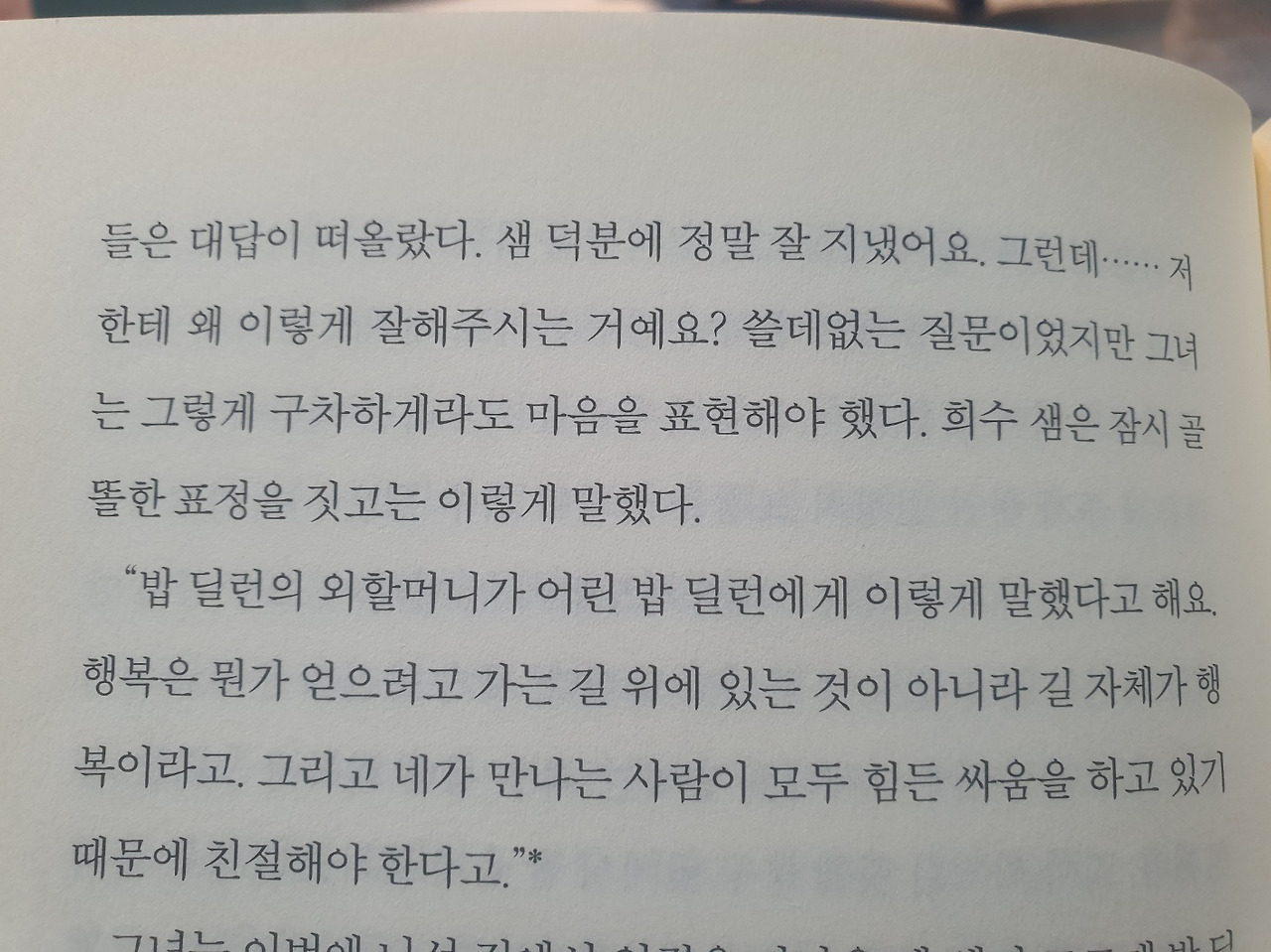 결국 삶은 [관계]였고 관계는 [소통]이었다. 행복은 멀리 있지 않고 [내 옆의 사람들]과 마음을 나누는 데 있음을 이제 깨달았다.