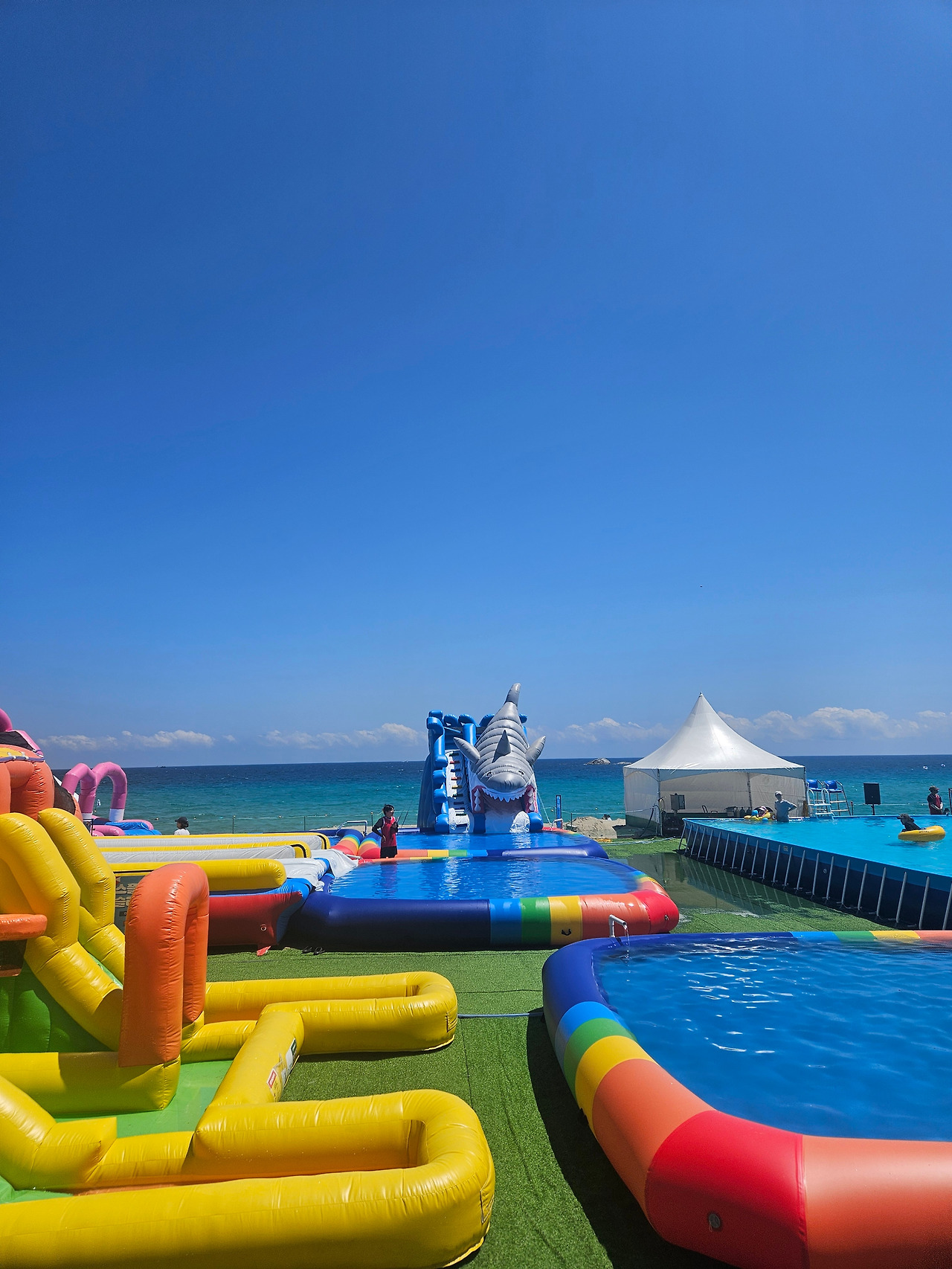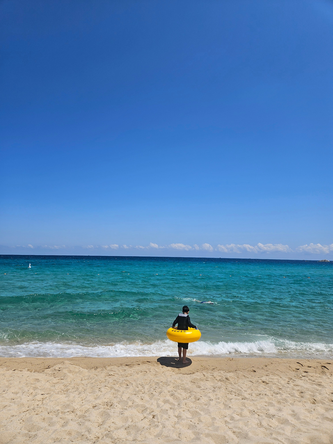 -이른점심 & 경포해수욕장 (수영) 11~2시 >> 오전 10시 전후부터 ~3시까지 바다 앞에서 수영 시작~(모래사장 위 물놀이장에서도 놀고 바다에서도 수영했음)