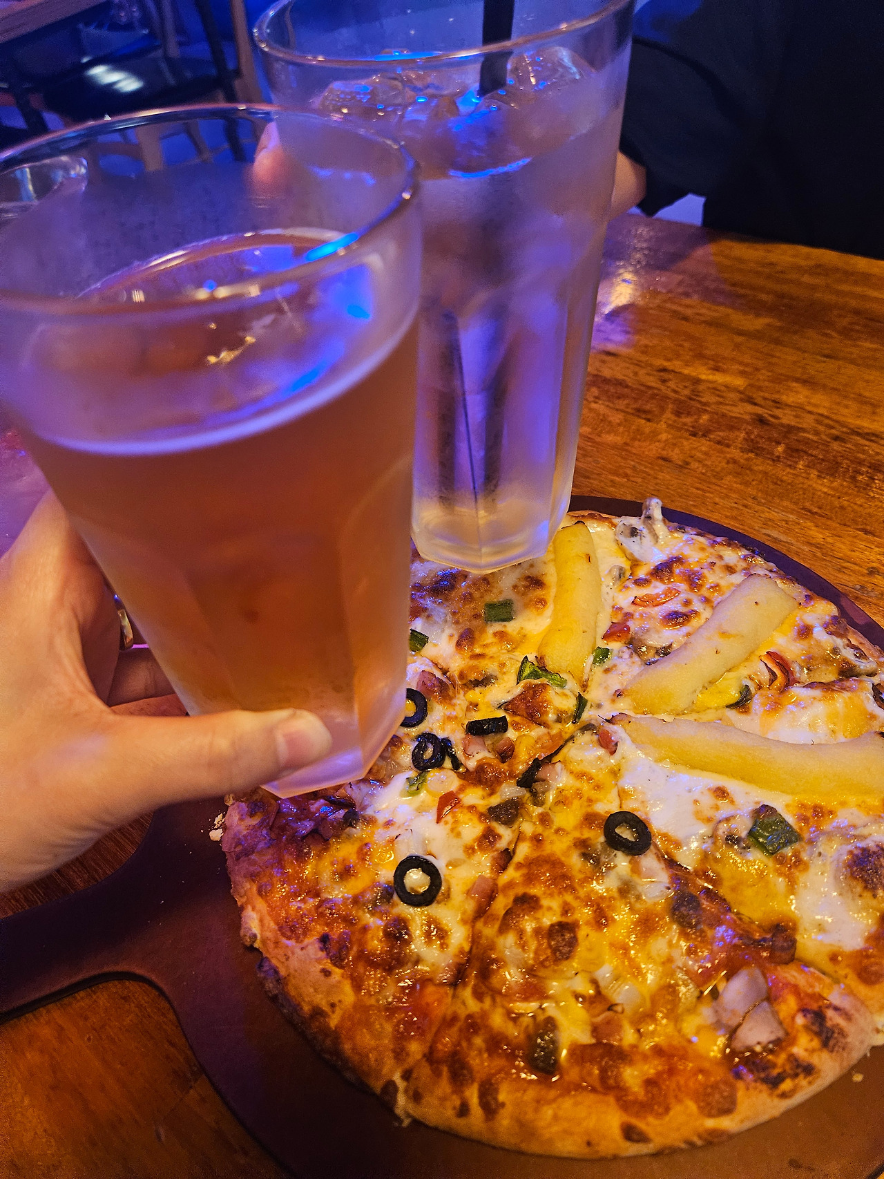 -저녁식사 >> 숙소 근처 피자집에서 피자로 저녁식사.