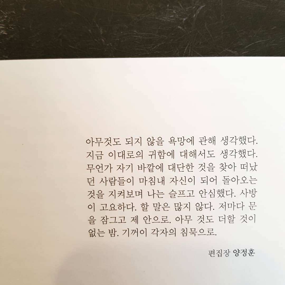 한 달이 이렇게 지나갔다. 자주 가는 단골 카페에서 아이스라떼 한 잔 하며 발견한 잡지의 주옥 같은 글귀가 내 마음을 위로한다. 오직 고요, 지금은 그러한 때.