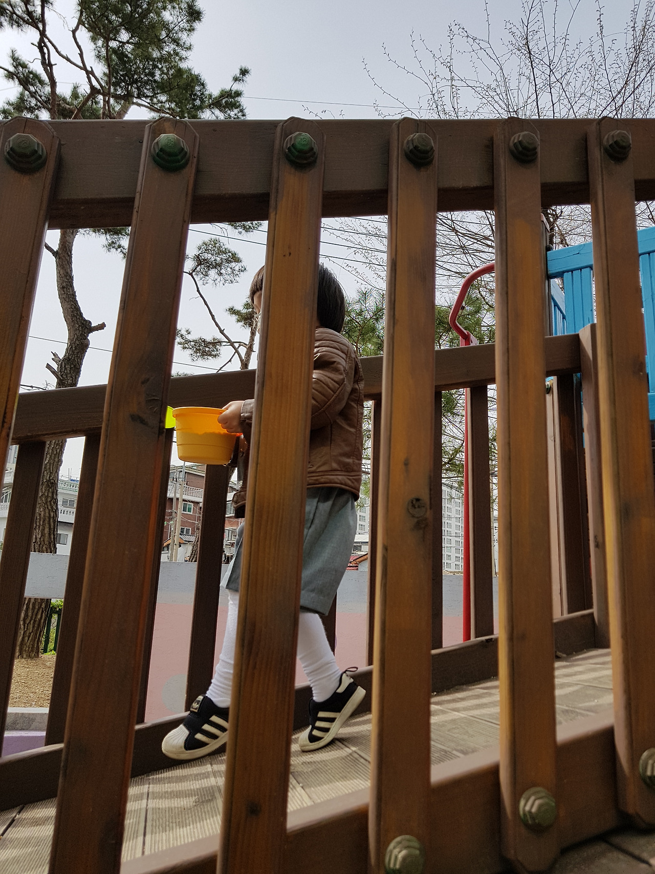 재미난 게, 애들 놀 때 엄마끼리 수다 떨 수 밖에 없는 구조라 나는 근 3주 사이 H양의 부모와 할머니 등에 대해 많이 알게 됐다. H의 부모는 맞벌이 금융권 부부, 그 엄마는 나랑 동갑, 주중 월~금 오전은 외할머니가 등원, 월~목 오후 하원은 이모할머니가, 금요일 오후는 친할머니가 하원을 한다. 나는 동시에 3 명의 할머니, 이모할머니와 안면을 트고 이야기를 나눴다.