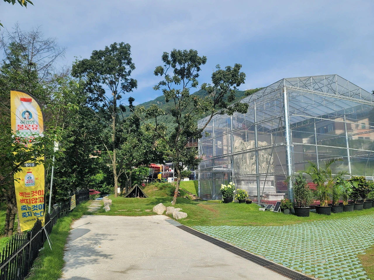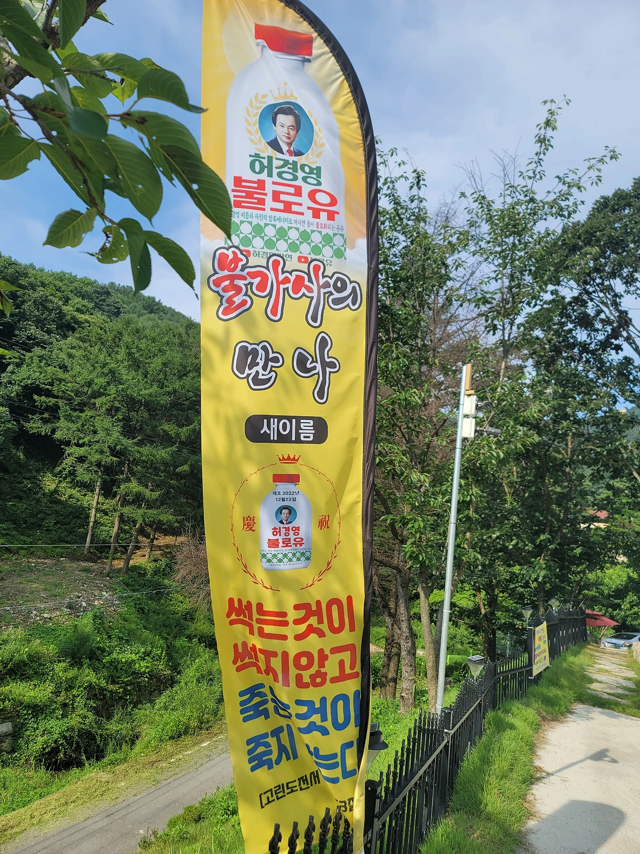 하지만 산속 깊속한 자락. 예전 장흥의 모습은 간곳없고 주변이 온통 개울가 가게와. 허경 영? 대표의 왕국이 요소 요소 자리해 있다. 오래된 모텔등을 집중. 매집 한듯 간판만 바뀌어진 모습이 매우 키치적이다. 대국민 배당. 1억씩 이라는 선거 공약을 실천하기 위한 왕국 건설 일까. 이 모든 자산의 원천은 어디에서 오는지도 궁금 해진다