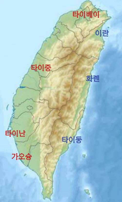 대만은 아몬드처럼 위에서 아래로 길쭉한 모양이다. 국토 면적은 남한의 절반도 되지 않지만 위아래로 긴 까닭에 타이베이에서 가오슝까지 거리가 약 350km에 달한다. 서울에서 부산까지가 약 400km이니 남북 간 길이는 큰 차이가 없다. 버스로 이동하려면 꽤 먼 거리이다.