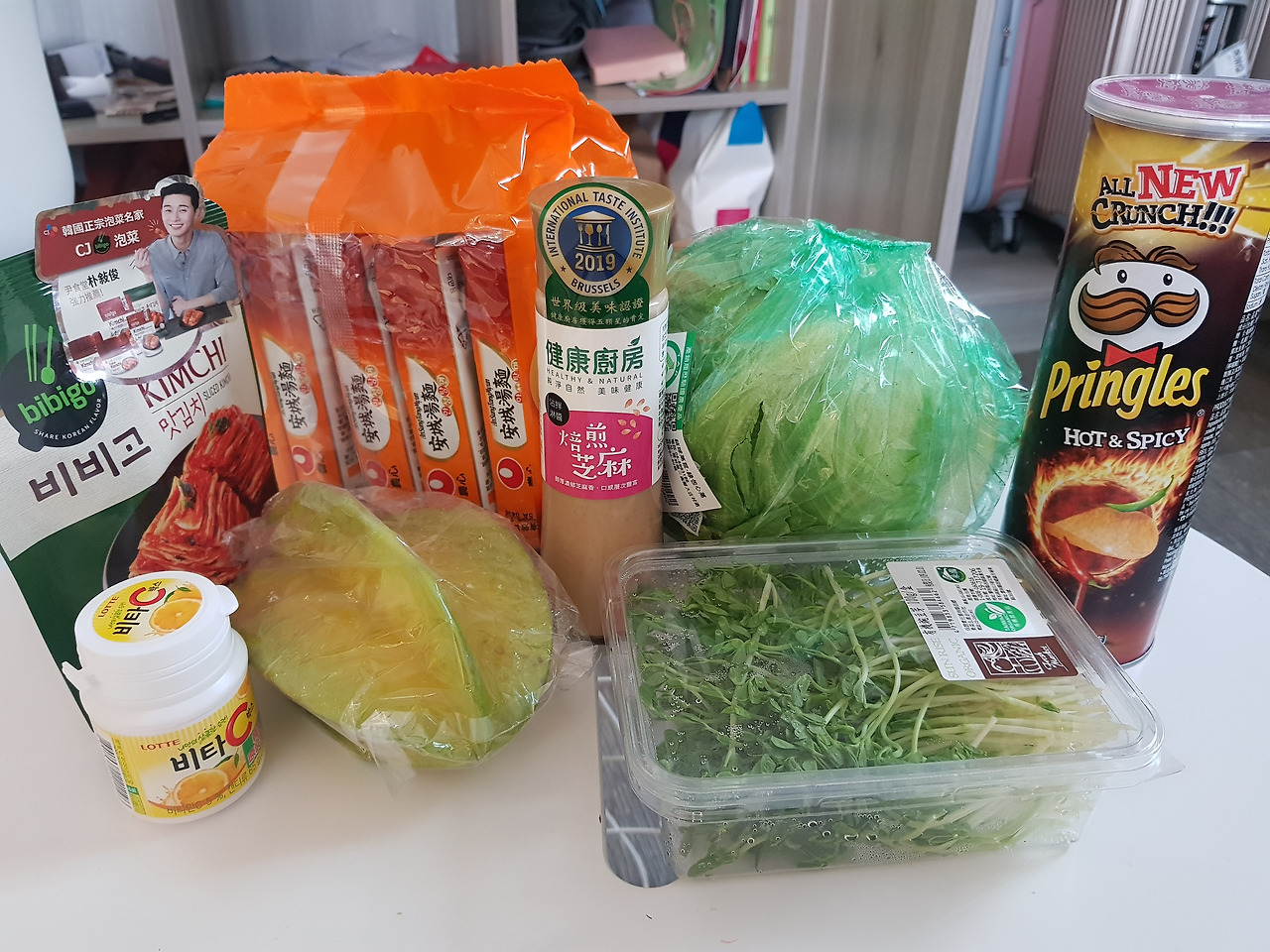 마트에서 구입한 김치, 안성탕면, 비타민C
