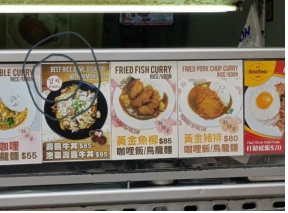 아래 사진은 타이중 동해대학교 서쪽에 위치한 ‘똥하이 비에슈(東海别墅, 동해별장)’라는 애칭으로 불리는 대학촌에 있는 카레를 주로 판매하는 식당이다. 이곳은 한국인을 대상으로 하는 식당이 결코 아니다. 왼쪽에서 두 번째 사진은 규동인데, 김치 규동을 10위엔(약 450) 비싼 가격으로 판매하고 있다. 그리고 한글로 ‘김치’라고 표기하였는데, 이것을 보는 순간 카메라 셔터를 누르지 않을 수 없었다.