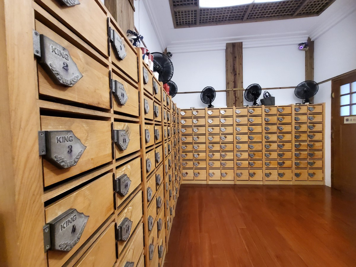 현재 우리나라 목욕탕에 있는 신발장과 유사하여 고개를 갸우뚱했다. 심지어 옛 모습을 재현한 열쇠도 낯설지 않다. 어릴 적에 엄마와 목욕탕 갔을 때에도 납작한 열쇠를 사용했었다.