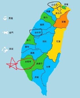 별표가 타이난. 위에서부터 차례로 대북, 대중, 대남.
